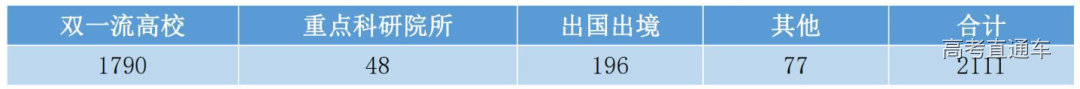 考取双一流高校及重点科研所1838人,占比87.07%。