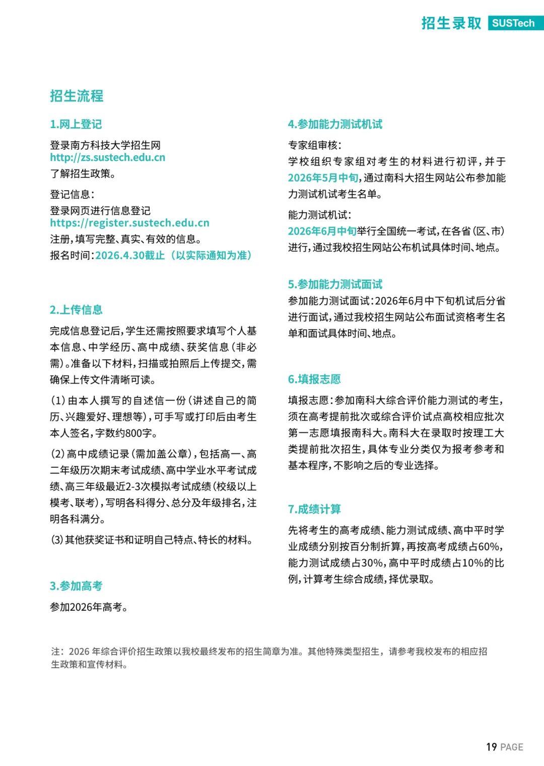 南科大2026年本科招生手册